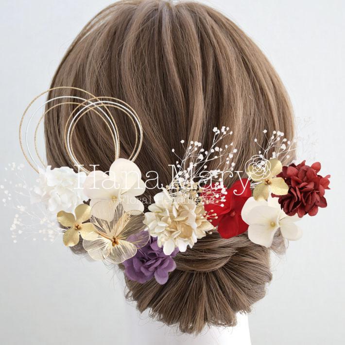 HanaMaryの髪飾りは生花をリアルに再現したアートフラワーと呼ばれるハイクオリティーな造花を使用しています。耐久性に優れ、成人式・卒業式やウェディングなどに何度でも繰り返し使用することができます。