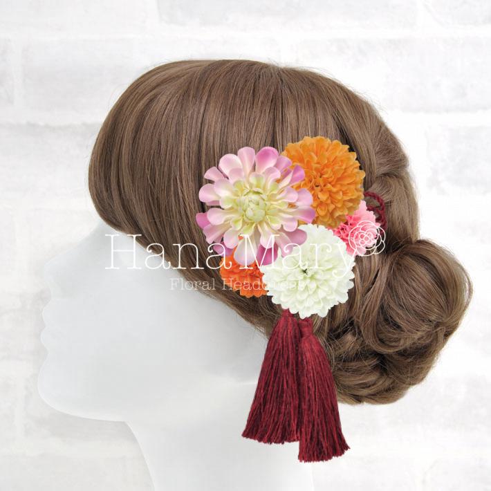 HanaMaryの髪飾りは生花をリアルに再現したアートフラワーと呼ばれるハイクオリティーな造花を使用しています。耐久性に優れ、成人式・卒業式やウェディングなどに何度でも繰り返し使用することができます。