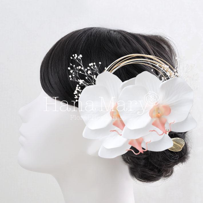HanaMaryの髪飾りは生花をリアルに再現したアートフラワーと呼ばれるハイクオリティーな造花を使用しています。耐久性に優れ、成人式・卒業式やウェディングなどに何度でも繰り返し使用することができます。