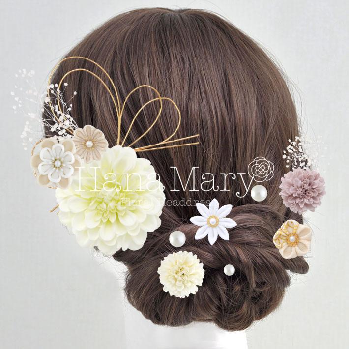 HanaMaryの髪飾りは生花をリアルに再現したアートフラワーと呼ばれるハイクオリティーな造花を使用しています。耐久性に優れ、成人式・卒業式やウェディングなどに何度でも繰り返し使用することができます。