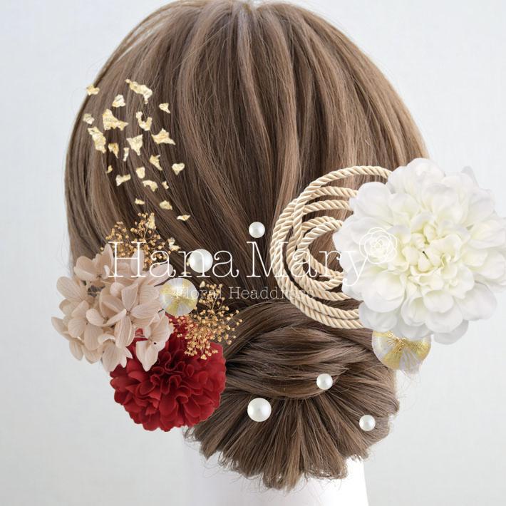 HanaMaryの髪飾りは生花をリアルに再現したアートフラワーと呼ばれるハイクオリティーな造花を使用しています。耐久性に優れ、成人式・卒業式やウェディングなどに何度でも繰り返し使用することができます。