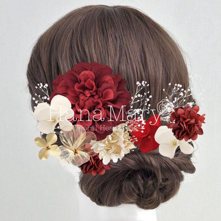 HanaMaryの髪飾りは生花をリアルに再現したアートフラワーと呼ばれるハイクオリティーな造花を使用しています。耐久性に優れ、成人式・卒業式やウェディングなどに何度でも繰り返し使用することができます。