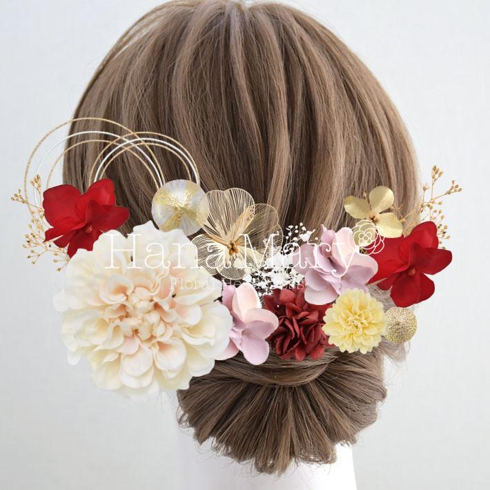 HanaMaryの髪飾りは生花をリアルに再現したアートフラワーと呼ばれるハイクオリティーな造花を使用しています。耐久性に優れ、成人式・卒業式やウェディングなどに何度でも繰り返し使用することができます。