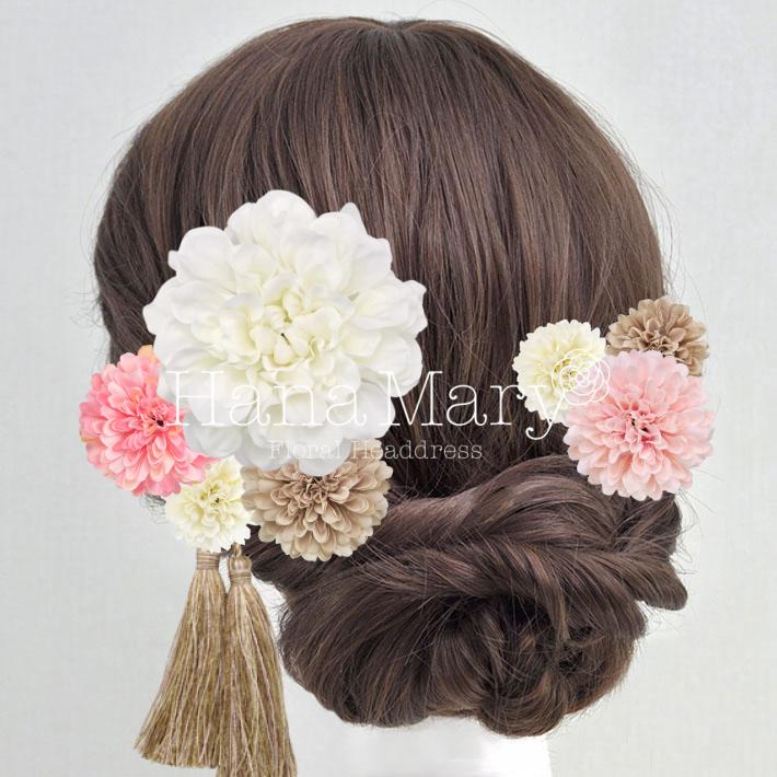 HanaMaryの髪飾りは生花をリアルに再現したアートフラワーと呼ばれるハイクオリティーな造花を使用しています。耐久性に優れ、成人式・卒業式やウェディングなどに何度でも繰り返し使用することができます。