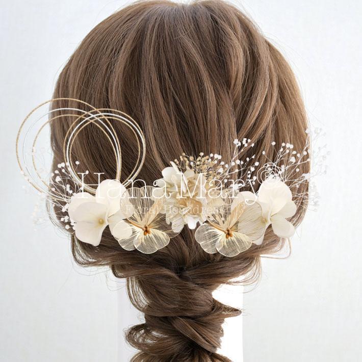 HanaMaryの髪飾りは生花をリアルに再現したアートフラワーと呼ばれるハイクオリティーな造花を使用しています。耐久性に優れ、成人式・卒業式やウェディングなどに何度でも繰り返し使用することができます。