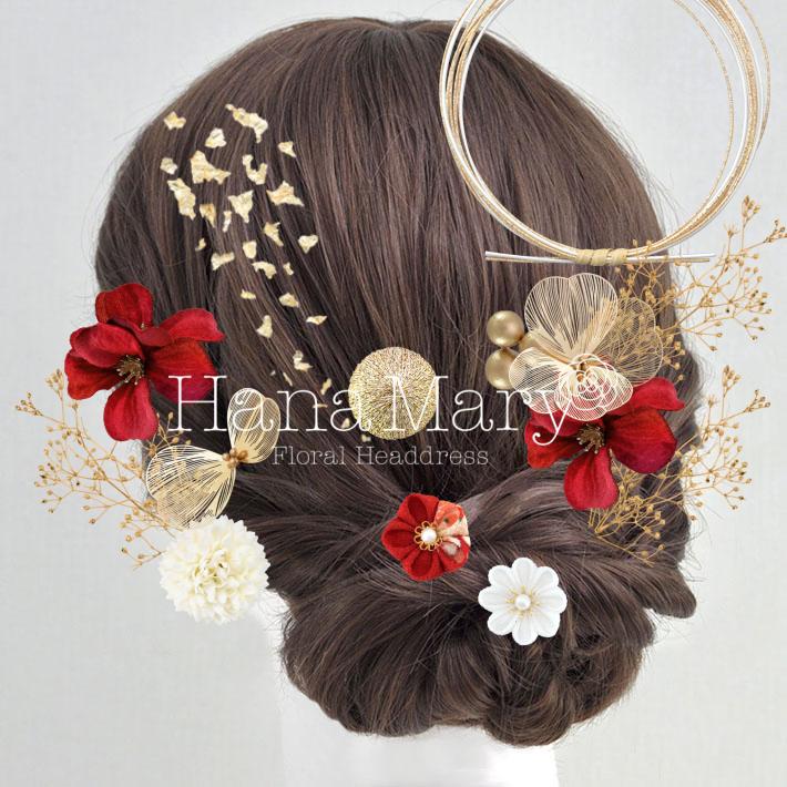HanaMaryの髪飾りは生花をリアルに再現したアートフラワーと呼ばれるハイクオリティーな造花を使用しています。耐久性に優れ、成人式・卒業式やウェディングなどに何度でも繰り返し使用することができます。
