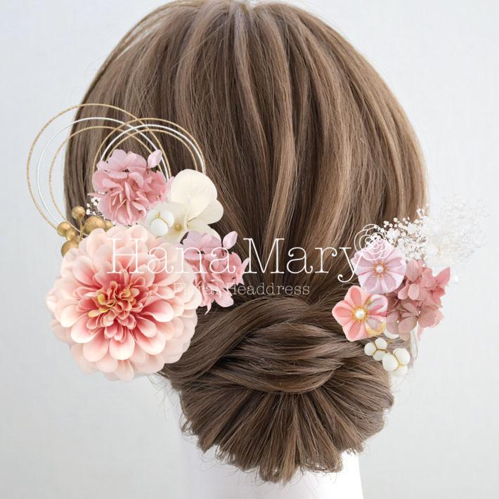 HanaMaryの髪飾りは生花をリアルに再現したアートフラワーと呼ばれるハイクオリティーな造花を使用しています。耐久性に優れ、成人式・卒業式やウェディングなどに何度でも繰り返し使用することができます。