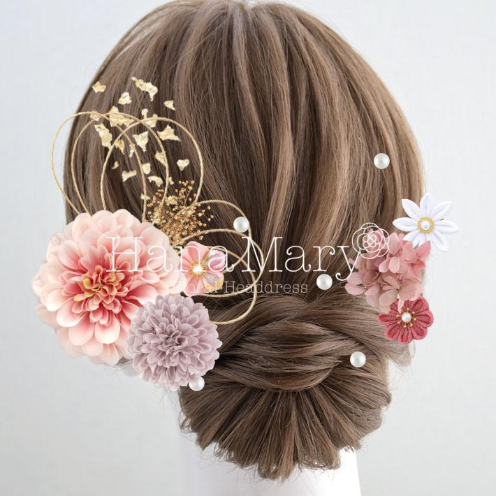 HanaMaryの髪飾りは生花をリアルに再現したアートフラワーと呼ばれるハイクオリティーな造花を使用しています。耐久性に優れ、成人式・卒業式やウェディングなどに何度でも繰り返し使用することができます。