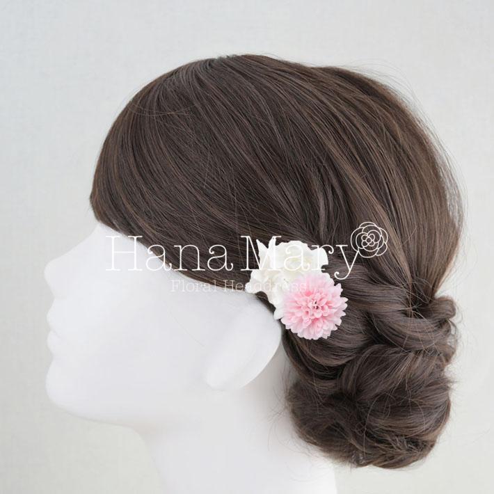 その日のヘアスタイルによって自由に一輪一輪配置できます。お花の数が多い場合でも、アメピンを追加して簡単にしっかりと固定できます。