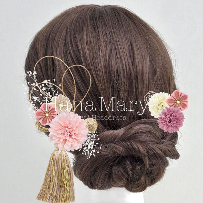 HanaMaryの髪飾りは生花をリアルに再現したアートフラワーと呼ばれるハイクオリティーな造花を使用しています。耐久性に優れ、成人式・卒業式やウェディングなどに何度でも繰り返し使用することができます。