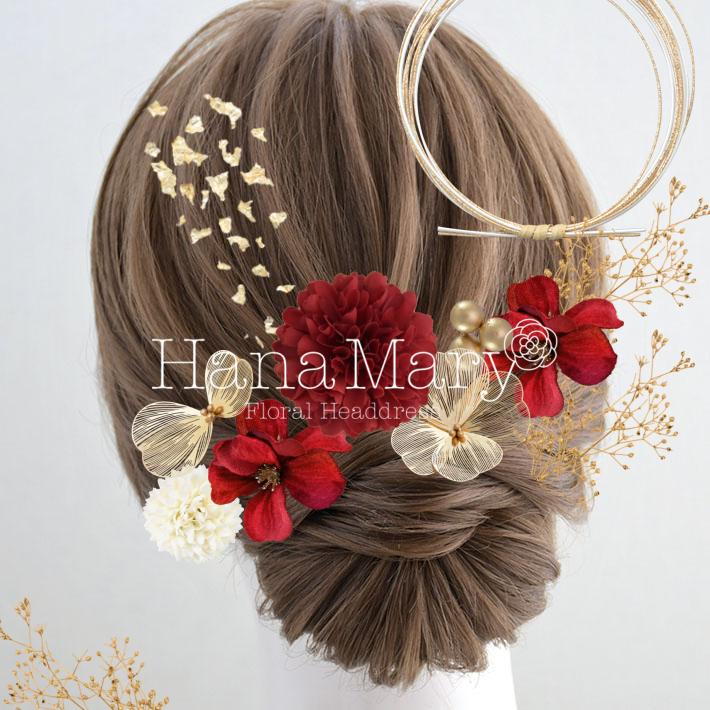 HanaMaryの髪飾りは生花をリアルに再現したアートフラワーと呼ばれるハイクオリティーな造花を使用しています。耐久性に優れ、成人式・卒業式やウェディングなどに何度でも繰り返し使用することができます。