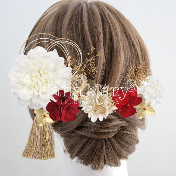 HanaMaryの髪飾りは生花をリアルに再現したアートフラワーと呼ばれるハイクオリティーな造花を使用しています。耐久性に優れ、成人式・卒業式やウェディングなどに何度でも繰り返し使用することができます。