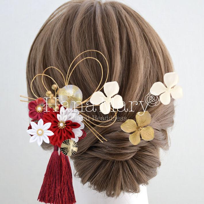 HanaMaryの髪飾りは生花をリアルに再現したアートフラワーと呼ばれるハイクオリティーな造花を使用しています。耐久性に優れ、成人式・卒業式やウェディングなどに何度でも繰り返し使用することができます。