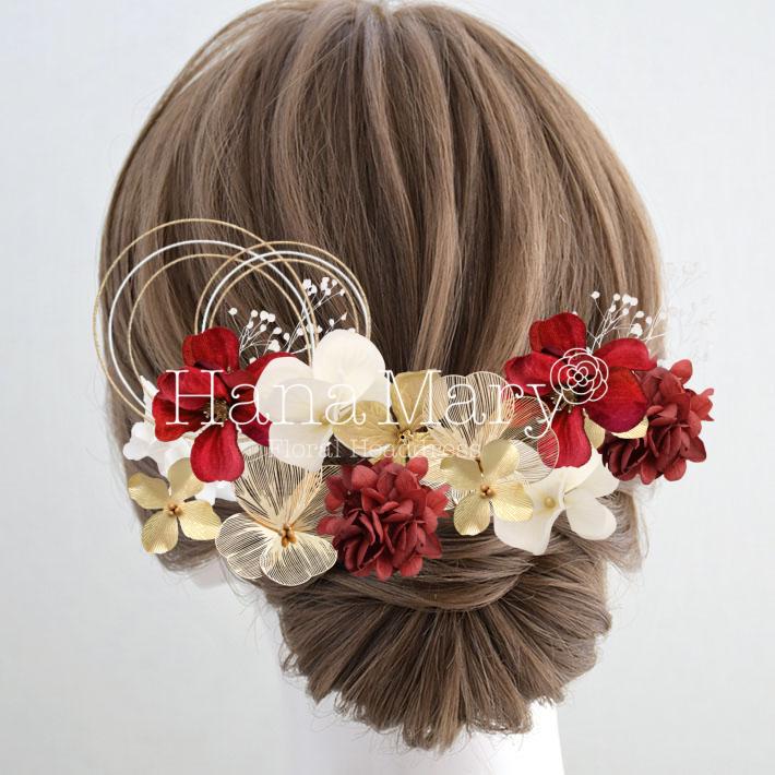 HanaMaryの髪飾りは生花をリアルに再現したアートフラワーと呼ばれるハイクオリティーな造花を使用しています。耐久性に優れ、成人式・卒業式やウェディングなどに何度でも繰り返し使用することができます。