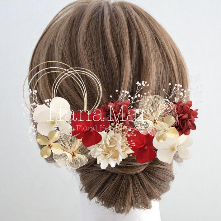 HanaMaryの髪飾りは生花をリアルに再現したアートフラワーと呼ばれるハイクオリティーな造花を使用しています。耐久性に優れ、成人式・卒業式やウェディングなどに何度でも繰り返し使用することができます。