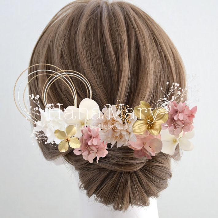HanaMaryの髪飾りは生花をリアルに再現したアートフラワーと呼ばれるハイクオリティーな造花を使用しています。耐久性に優れ、成人式・卒業式やウェディングなどに何度でも繰り返し使用することができます。