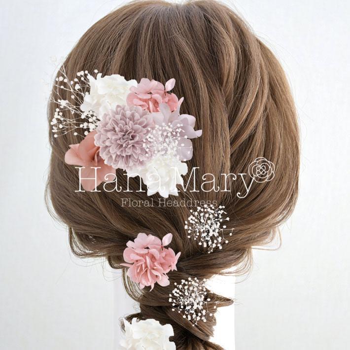 HanaMaryの髪飾りは生花をリアルに再現したアートフラワーと呼ばれるハイクオリティーな造花を使用しています。耐久性に優れ、成人式・卒業式やウェディングなどに何度でも繰り返し使用することができます。