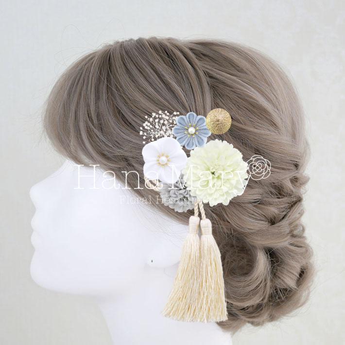 HanaMaryの髪飾りは生花をリアルに再現したアートフラワーと呼ばれるハイクオリティーな造花を使用しています。耐久性に優れ、成人式・卒業式やウェディングなどに何度でも繰り返し使用することができます。