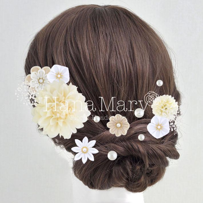 HanaMaryの髪飾りは生花をリアルに再現したアートフラワーと呼ばれるハイクオリティーな造花を使用しています。耐久性に優れ、成人式・卒業式やウェディングなどに何度でも繰り返し使用することができます。