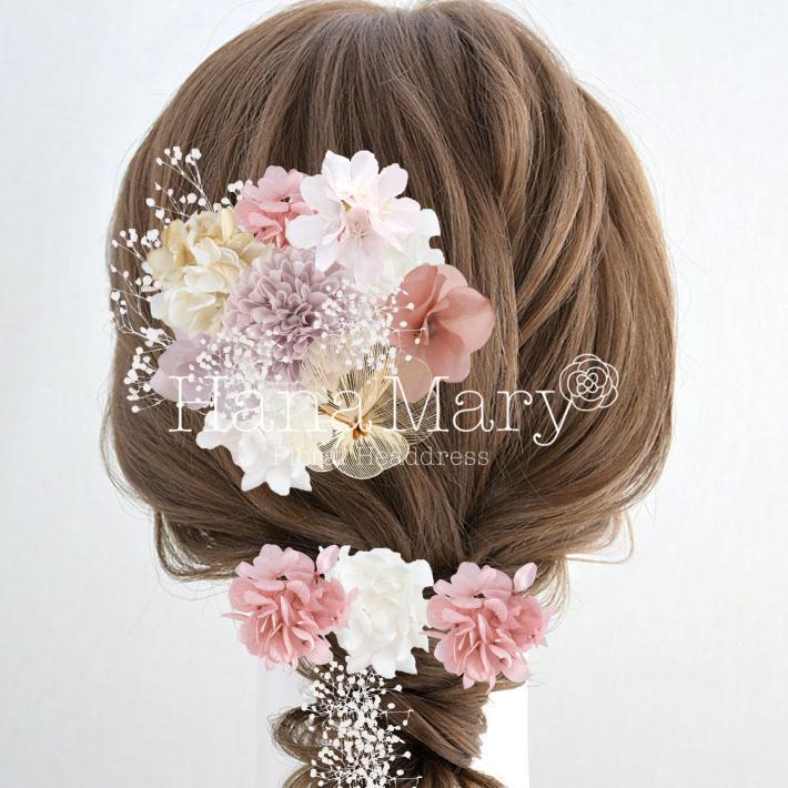 その日のヘアスタイルによって自由に一輪一輪配置できます。お花の数が多い場合でも、アメピンを追加して簡単にしっかりと固定できます。