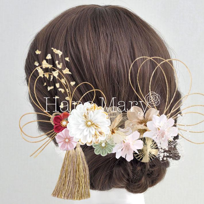 HanaMaryの髪飾りは生花をリアルに再現したアートフラワーと呼ばれるハイクオリティーな造花を使用しています。耐久性に優れ、成人式・卒業式やウェディングなどに何度でも繰り返し使用することができます。