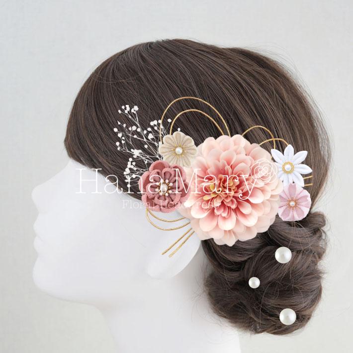 HanaMaryの髪飾りは生花をリアルに再現したアートフラワーと呼ばれるハイクオリティーな造花を使用しています。耐久性に優れ、成人式・卒業式やウェディングなどに何度でも繰り返し使用することができます。