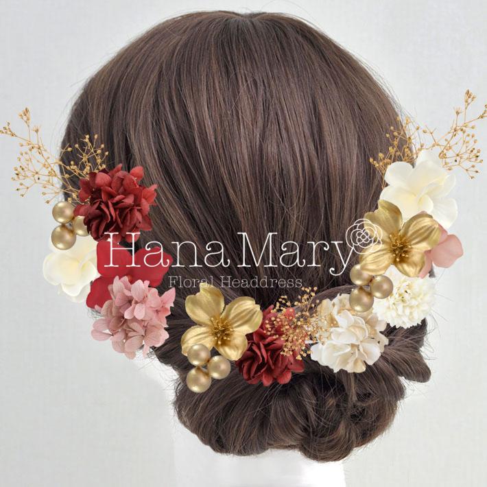 HanaMaryの髪飾りは生花をリアルに再現したアートフラワーと呼ばれるハイクオリティーな造花を使用しています。耐久性に優れ、成人式・卒業式やウェディングなどに何度でも繰り返し使用することができます。