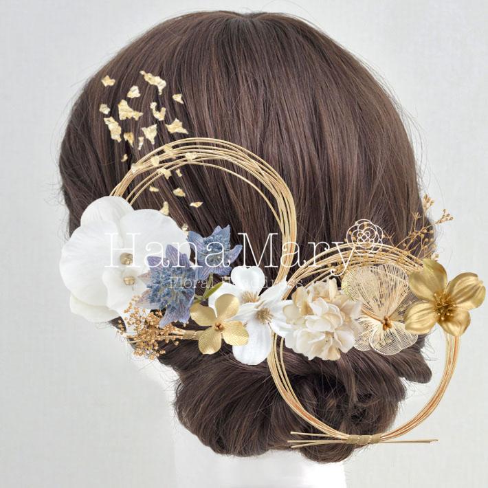 HanaMaryの髪飾りは生花をリアルに再現したアートフラワーと呼ばれるハイクオリティーな造花を使用しています。耐久性に優れ、成人式・卒業式やウェディングなどに何度でも繰り返し使用することができます。