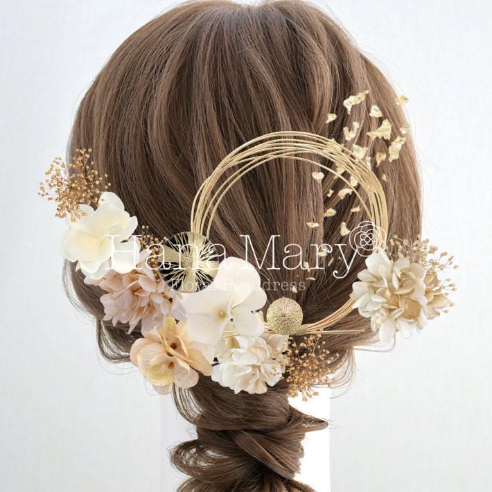 HanaMaryの髪飾りは生花をリアルに再現したアートフラワーと呼ばれるハイクオリティーな造花を使用しています。耐久性に優れ、成人式・卒業式やウェディングなどに何度でも繰り返し使用することができます。