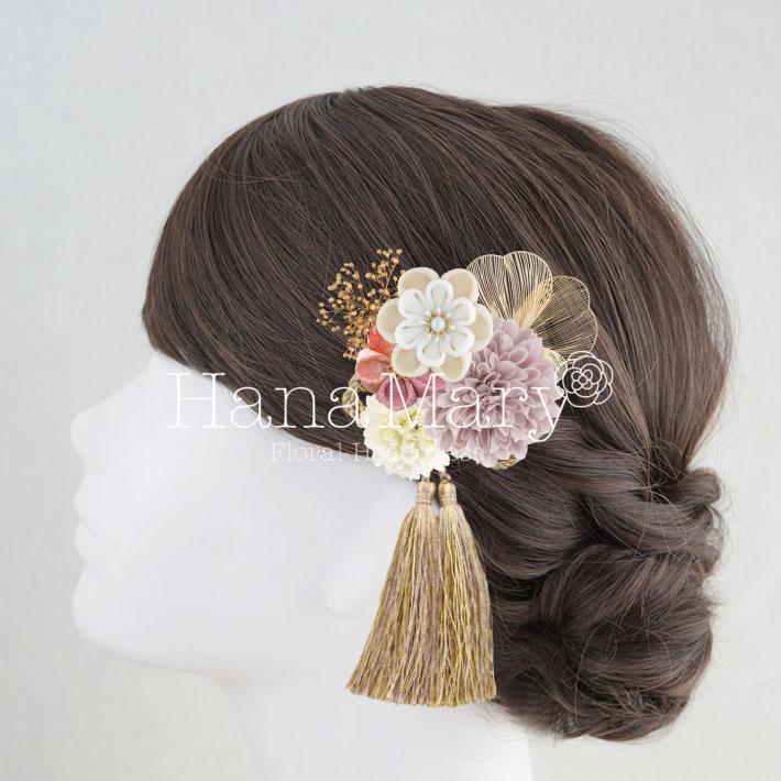 HanaMaryの髪飾りは生花をリアルに再現したアートフラワーと呼ばれるハイクオリティーな造花を使用しています。耐久性に優れ、成人式・卒業式やウェディングなどに何度でも繰り返し使用することができます。