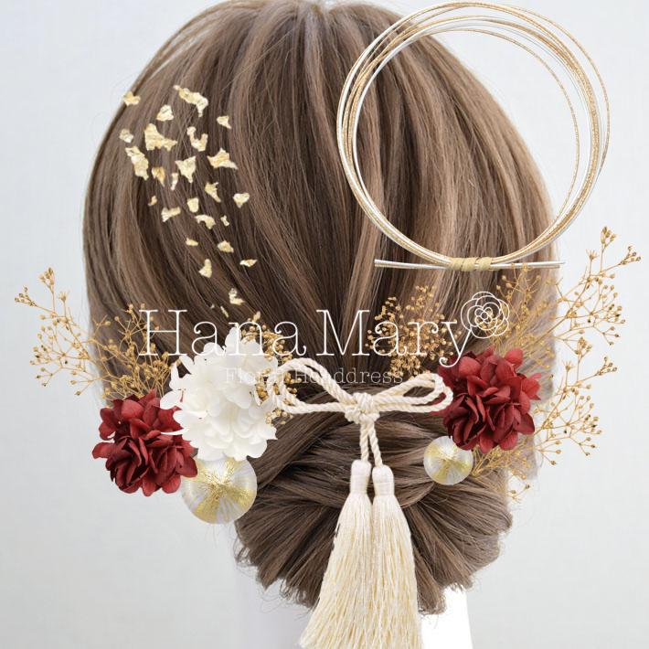 HanaMaryの髪飾りは生花をリアルに再現したアートフラワーと呼ばれるハイクオリティーな造花を使用しています。耐久性に優れ、成人式・卒業式やウェディングなどに何度でも繰り返し使用することができます。
