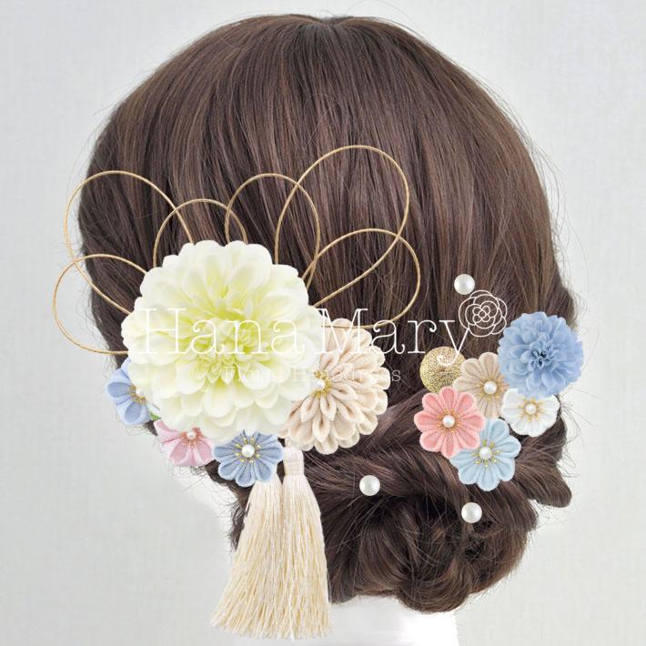 HanaMaryの髪飾りは生花をリアルに再現したアートフラワーと呼ばれるハイクオリティーな造花を使用しています。耐久性に優れ、成人式・卒業式やウェディングなどに何度でも繰り返し使用することができます。