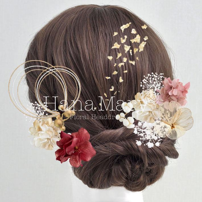 HanaMaryの髪飾りは生花をリアルに再現したアートフラワーと呼ばれるハイクオリティーな造花を使用しています。耐久性に優れ、成人式・卒業式やウェディングなどに何度でも繰り返し使用することができます。