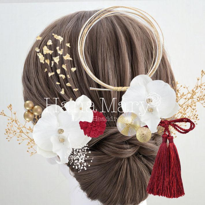 HanaMaryの髪飾りは生花をリアルに再現したアートフラワーと呼ばれるハイクオリティーな造花を使用しています。耐久性に優れ、成人式・卒業式やウェディングなどに何度でも繰り返し使用することができます。