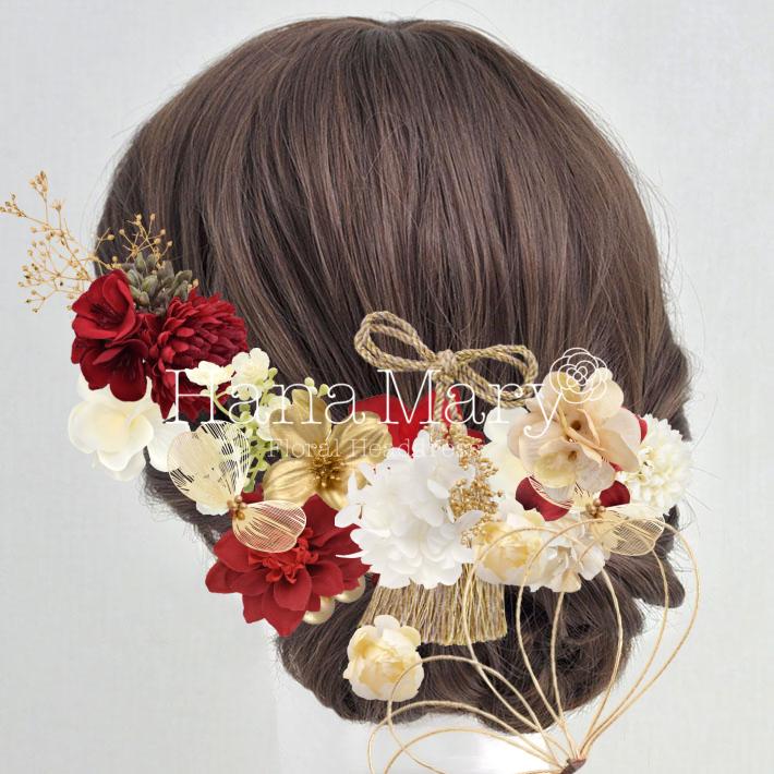 HanaMaryの髪飾りは生花をリアルに再現したアートフラワーと呼ばれるハイクオリティーな造花を使用しています。耐久性に優れ、成人式・卒業式やウェディングなどに何度でも繰り返し使用することができます。