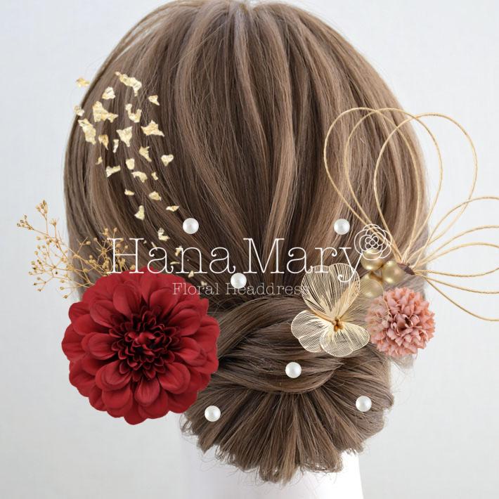 HanaMaryの髪飾りは生花をリアルに再現したアートフラワーと呼ばれるハイクオリティーな造花を使用しています。耐久性に優れ、成人式・卒業式やウェディングなどに何度でも繰り返し使用することができます。