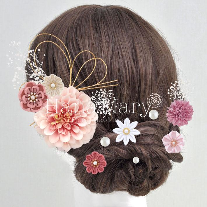 HanaMaryの髪飾りは生花をリアルに再現したアートフラワーと呼ばれるハイクオリティーな造花を使用しています。耐久性に優れ、成人式・卒業式やウェディングなどに何度でも繰り返し使用することができます。
