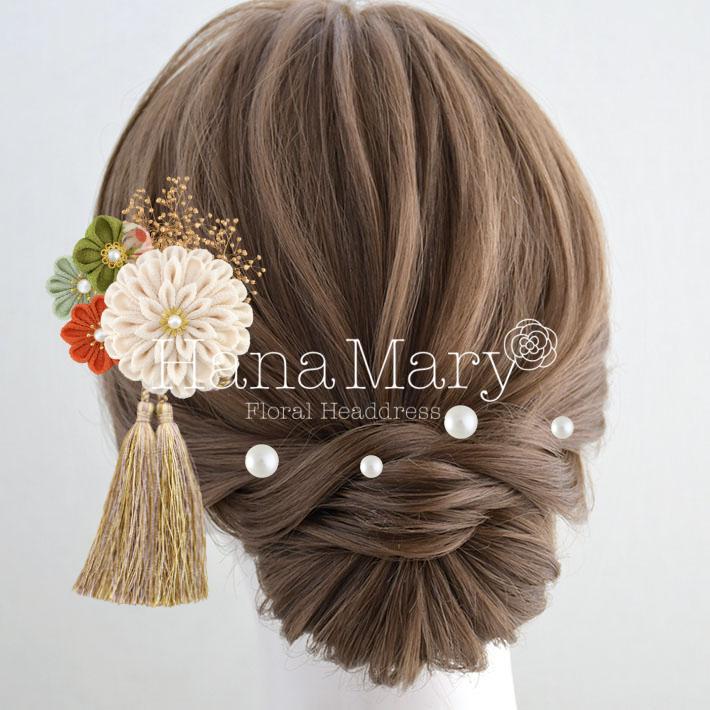 HanaMaryの髪飾りは生花をリアルに再現したアートフラワーと呼ばれるハイクオリティーな造花を使用しています。耐久性に優れ、成人式・卒業式やウェディングなどに何度でも繰り返し使用することができます。