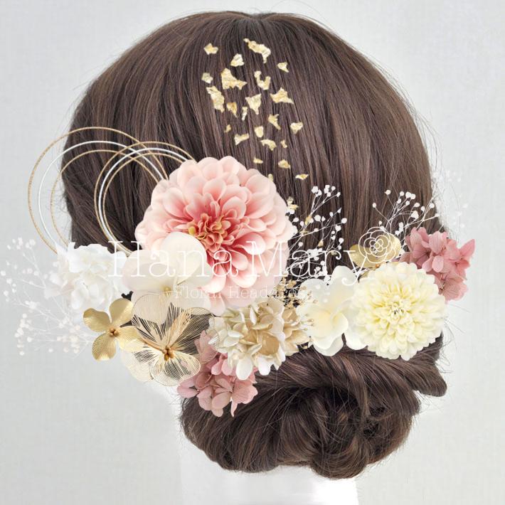 HanaMaryの髪飾りは生花をリアルに再現したアートフラワーと呼ばれるハイクオリティーな造花を使用しています。耐久性に優れ、成人式・卒業式やウェディングなどに何度でも繰り返し使用することができます。