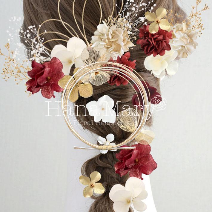 HanaMaryの髪飾りは生花をリアルに再現したアートフラワーと呼ばれるハイクオリティーな造花を使用しています。耐久性に優れ、成人式・卒業式やウェディングなどに何度でも繰り返し使用することができます。