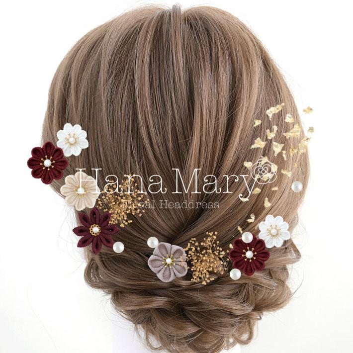 HanaMaryの髪飾りは生花をリアルに再現したアートフラワーと呼ばれるハイクオリティーな造花を使用しています。耐久性に優れ、成人式・卒業式やウェディングなどに何度でも繰り返し使用することができます。
