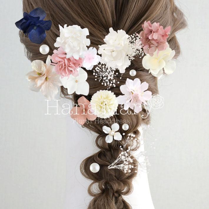 その日のヘアスタイルによって自由に一輪一輪配置できます。お花の数が多い場合でも、アメピンを追加して簡単にしっかりと固定できます。