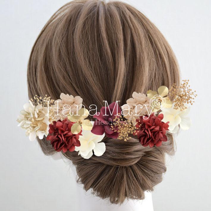 HanaMaryの髪飾りは生花をリアルに再現したアートフラワーと呼ばれるハイクオリティーな造花を使用しています。耐久性に優れ、成人式・卒業式やウェディングなどに何度でも繰り返し使用することができます。