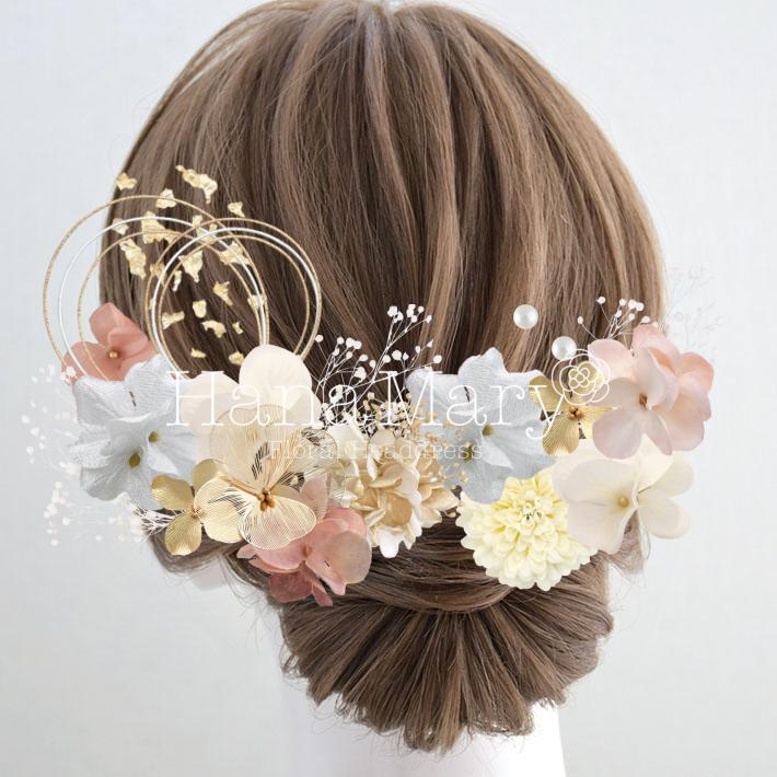 HanaMaryの髪飾りは生花をリアルに再現したアートフラワーと呼ばれるハイクオリティーな造花を使用しています。耐久性に優れ、成人式・卒業式やウェディングなどに何度でも繰り返し使用することができます。