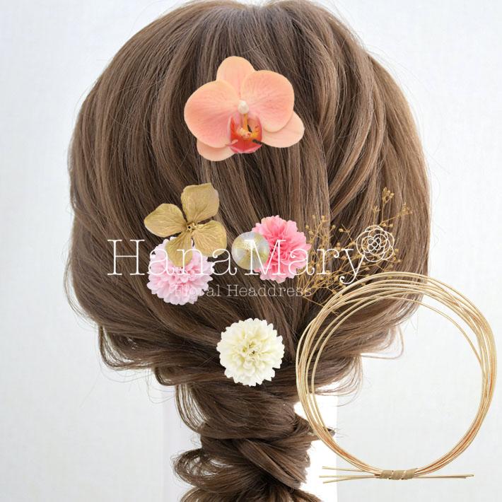 その日のヘアスタイルによって自由に一輪一輪配置できます。お花の数が多い場合でも、アメピンを追加して簡単にしっかりと固定できます。