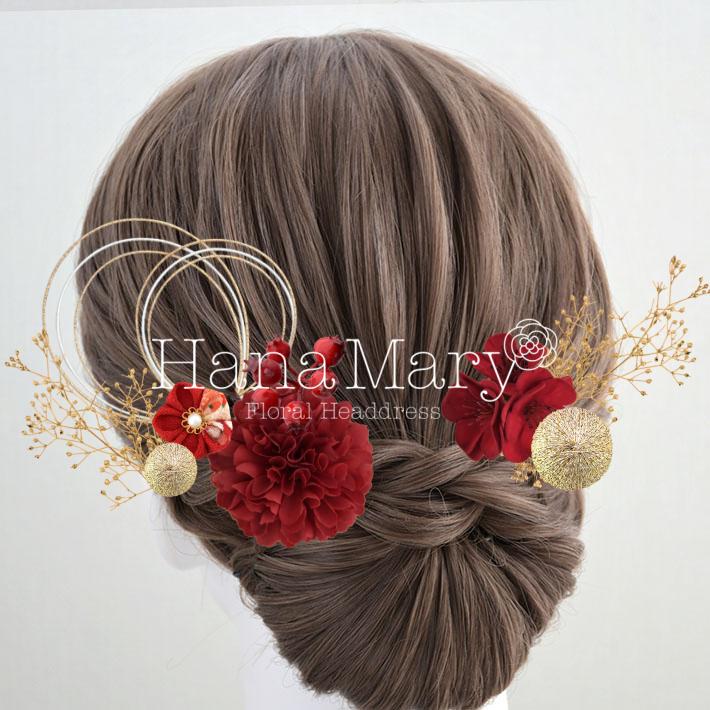 HanaMaryの髪飾りは生花をリアルに再現したアートフラワーと呼ばれるハイクオリティーな造花を使用しています。耐久性に優れ、成人式・卒業式やウェディングなどに何度でも繰り返し使用することができます。