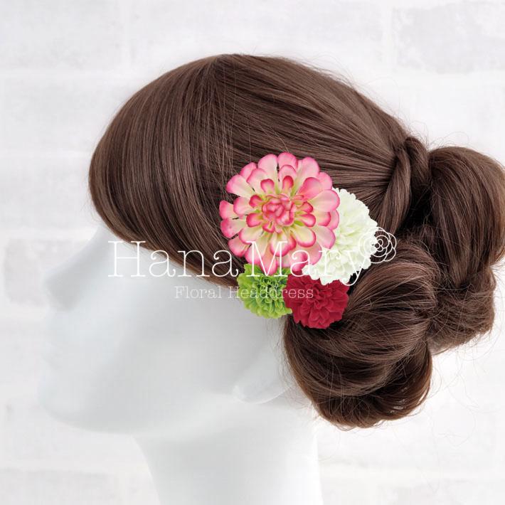 その日のヘアスタイルによって自由に一輪一輪配置できます。お花の数が多い場合でも、アメピンを追加して簡単にしっかりと固定できます。