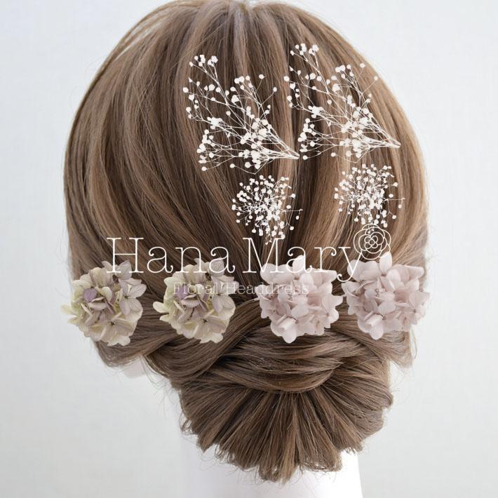 その日のヘアスタイルによって自由に一輪一輪配置できます。お花の数が多い場合でも、アメピンを追加して簡単にしっかりと固定できます。