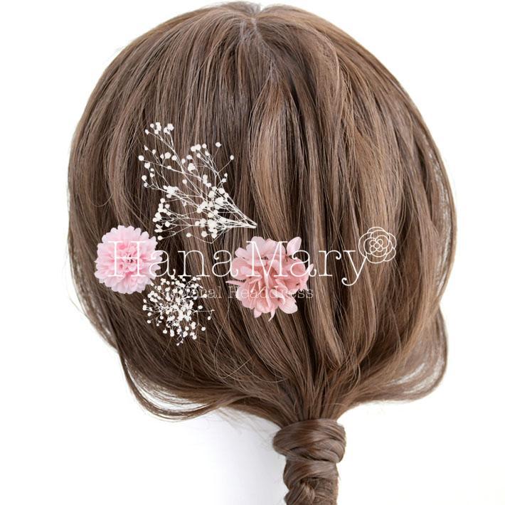 その日のヘアスタイルによって自由に一輪一輪配置できます。お花の数が多い場合でも、アメピンを追加して簡単にしっかりと固定できます。