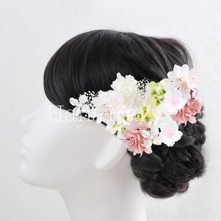 HanaMaryの髪飾りは生花をリアルに再現したアートフラワーと呼ばれるハイクオリティーな造花を使用しています。耐久性に優れ、成人式・卒業式やウェディングなどに何度でも繰り返し使用することができます。